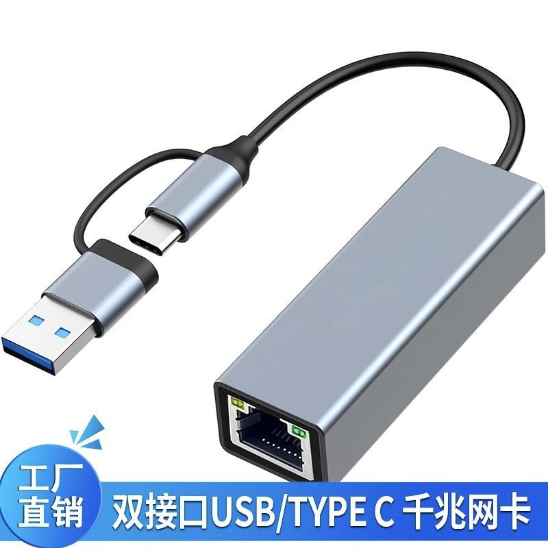 USB ギガビット Type-c デュアルヘッド - 2.5G ネットワークカードコンバータ rj45 インターフェース ノートパソコン用有線ネットワークカード