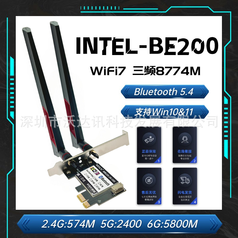 BE200 pcieワイヤレスカードギガビット三周波数WiFi7 bluetooth 5.4デスクトップコンピュータのマザーボード内蔵インターフェイス