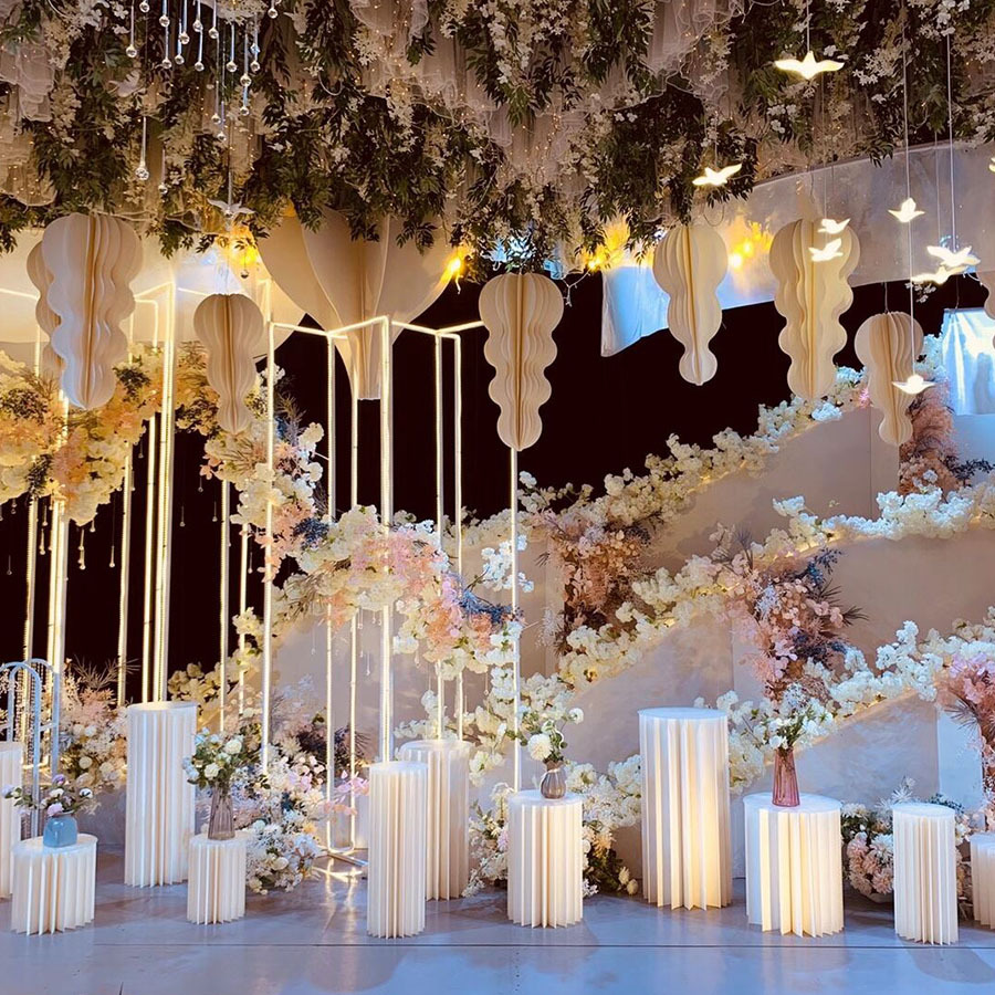 結婚祝いの道具は折りたたみのデザートを並べて、結婚式の紙の道はローマの柱の折り紙の商店街の展示台の現物の卸売りを引きます。