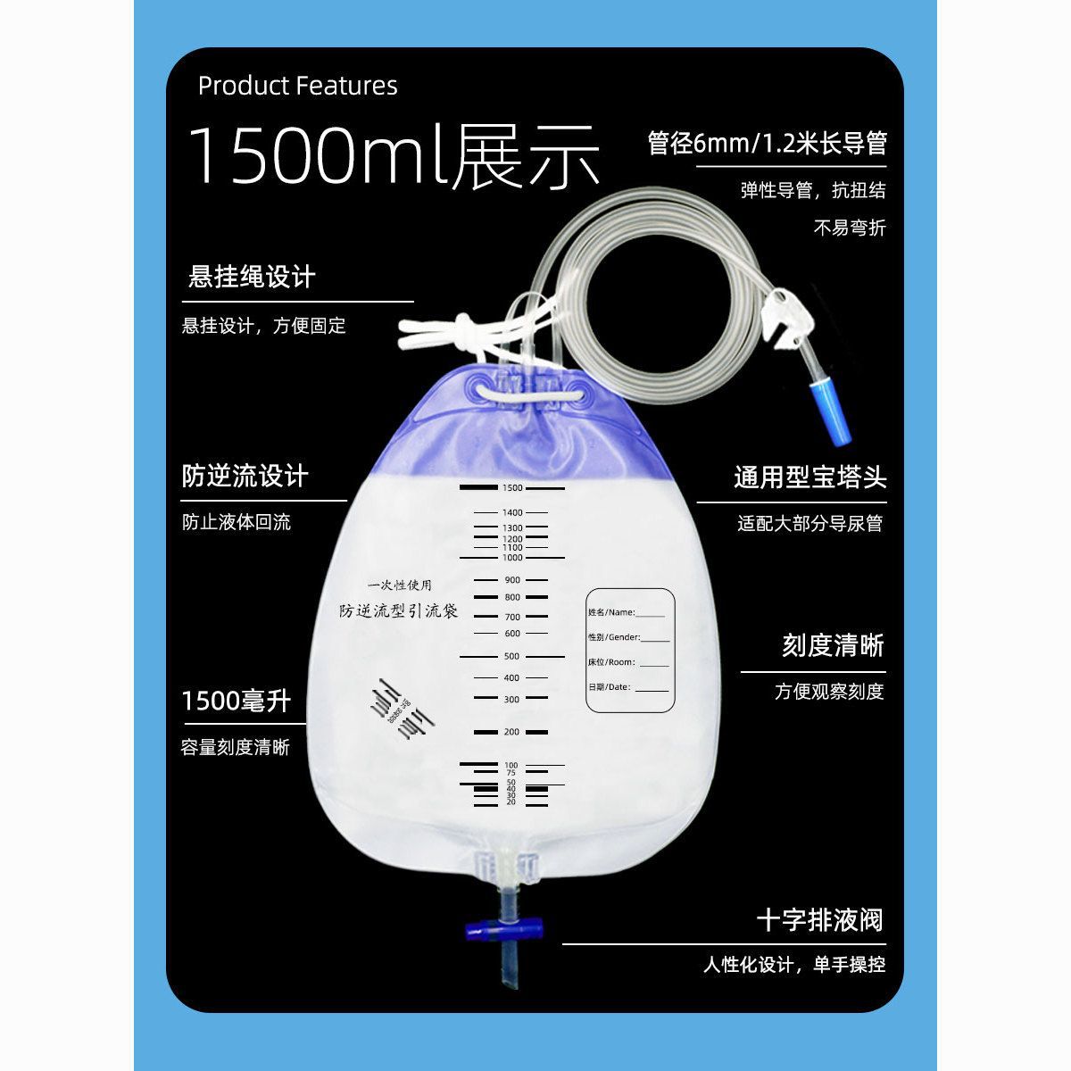 医療用使い捨て逆流防止ドレナージ袋男女カテーテル尿採取尿パック逆流防止1000/1500ml