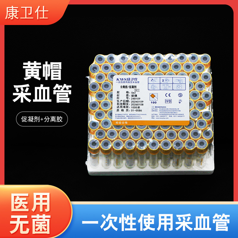 康衛仕使い捨て真空採血管医療用分離ホース凝固促進剤黄帽採取血清100本