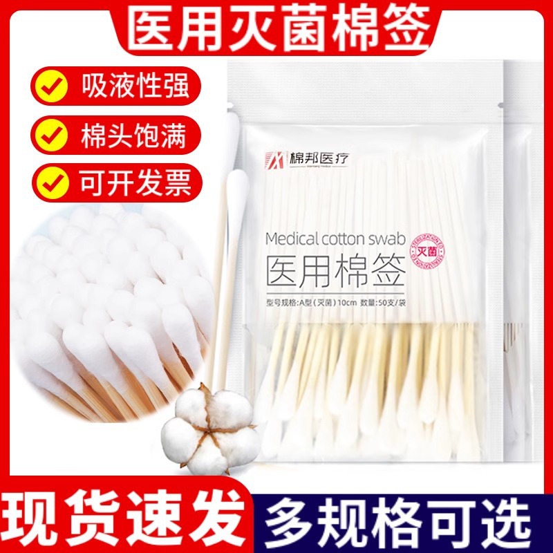 綿邦医療用使い捨て無菌綿棒脱脂綿棒8cm 12cmシングルヘッド滅菌綿棒