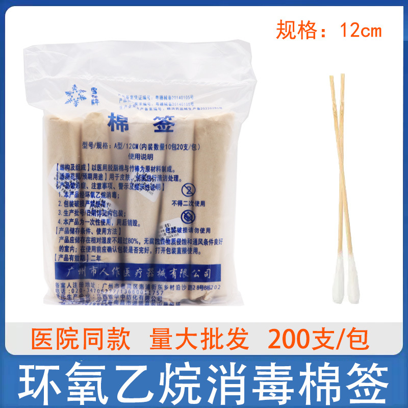 広州雪花牌使い捨て綿棒エチレンオキシド消毒綿棒包装12cm 200本/バッグ