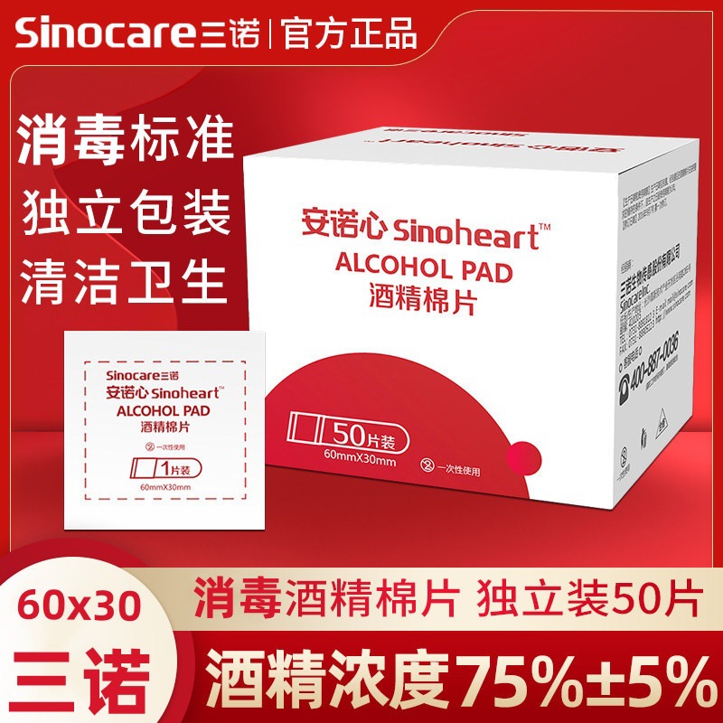 三諾医療用アルコール綿片75度携帯電話の顔の耳の穴の使い捨て消毒綿片は単独で50枚包装します。