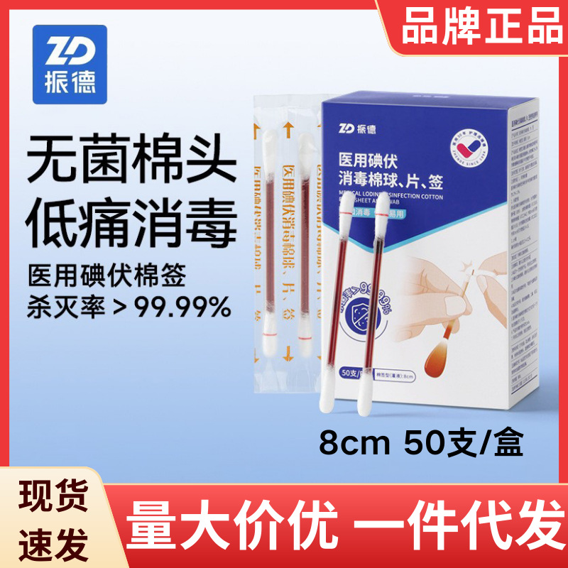 振徳医療用ヨウ素ボルト消毒綿棒使い捨て消毒綿棒携帯家庭用50本の正規品卸売り