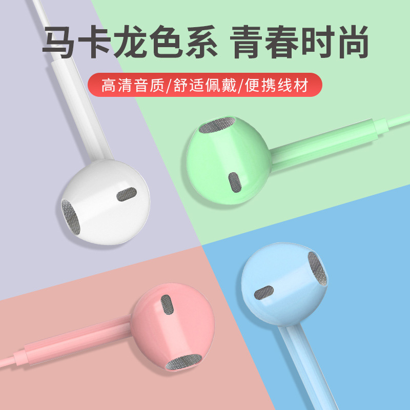 新型マカロン有線イヤホン線控付麦重低音携帯電話イヤホン入耳式通用イヤホン耳栓