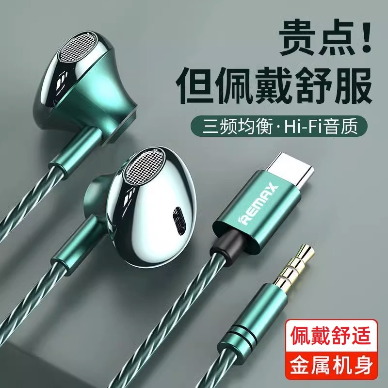 Remax入耳式有線イヤホン重低音線制御イヤホン麦付生中継k歌金属hifiゲームイヤホン