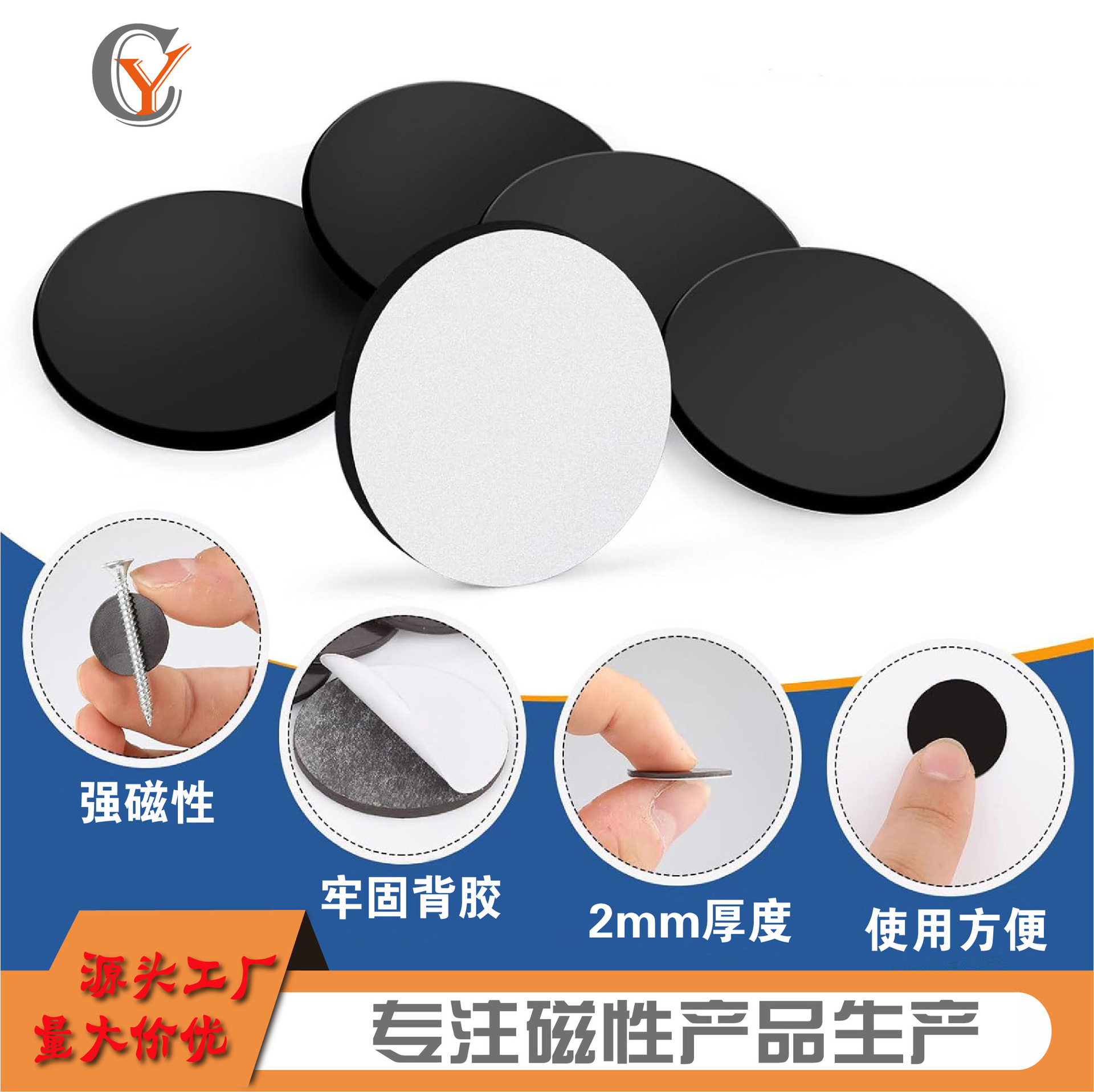 メーカーのゴム製軟磁性冷蔵庫マグネットラウンドブラック自己粘着軟磁性マグネット教材粘着裏地付き異性マグネット