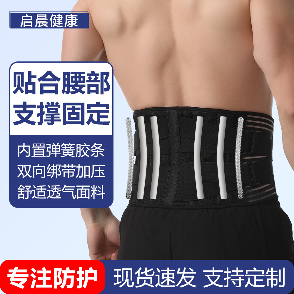 黒の通気性ウエスト保護ベルト腰間盤突出固定ベルト鋼板サポートウエスト通気保護ベルト