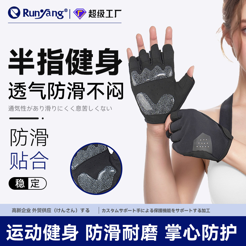 クロスボーダー成人男女フィットネス手袋通気滑り止め器械トレーニング手のひら乗り半指スポーツ手袋