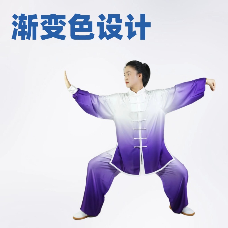渐变色太极服武术服训练服八段锦表演服牛奶丝表演武术套装练功弯
