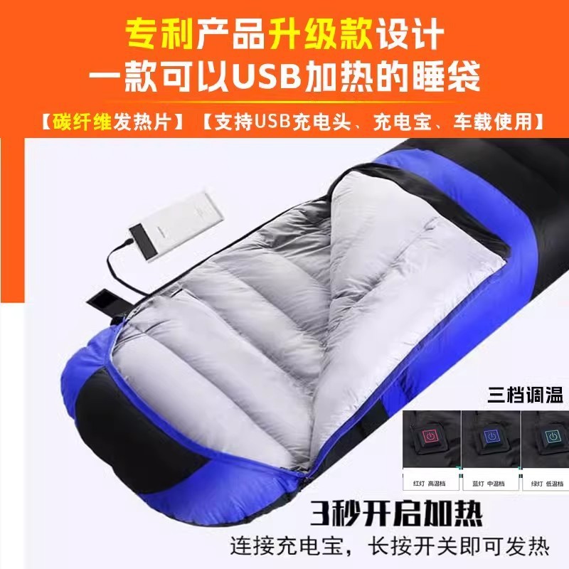 発熱寝袋USB電気加熱成人寝袋は防寒冬保温屋外一人で充電宝をサポートする