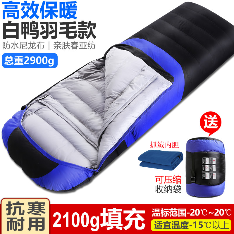 屋外ダウン寝袋四季通用厚手保温白鴨パイル封筒式便利防寒昼休み成人寝袋