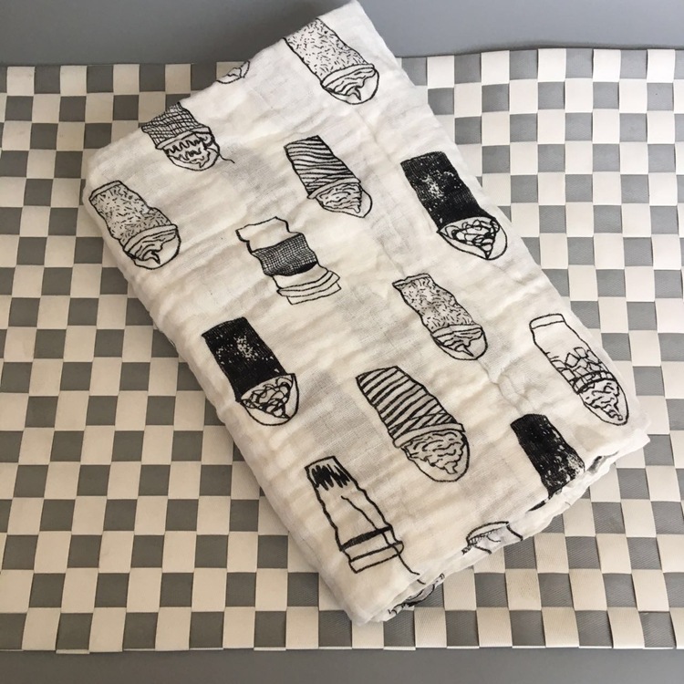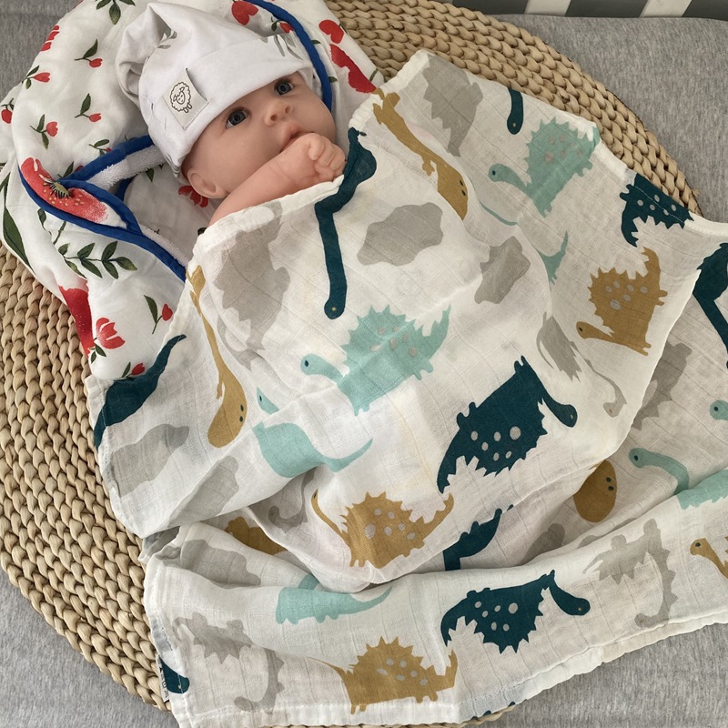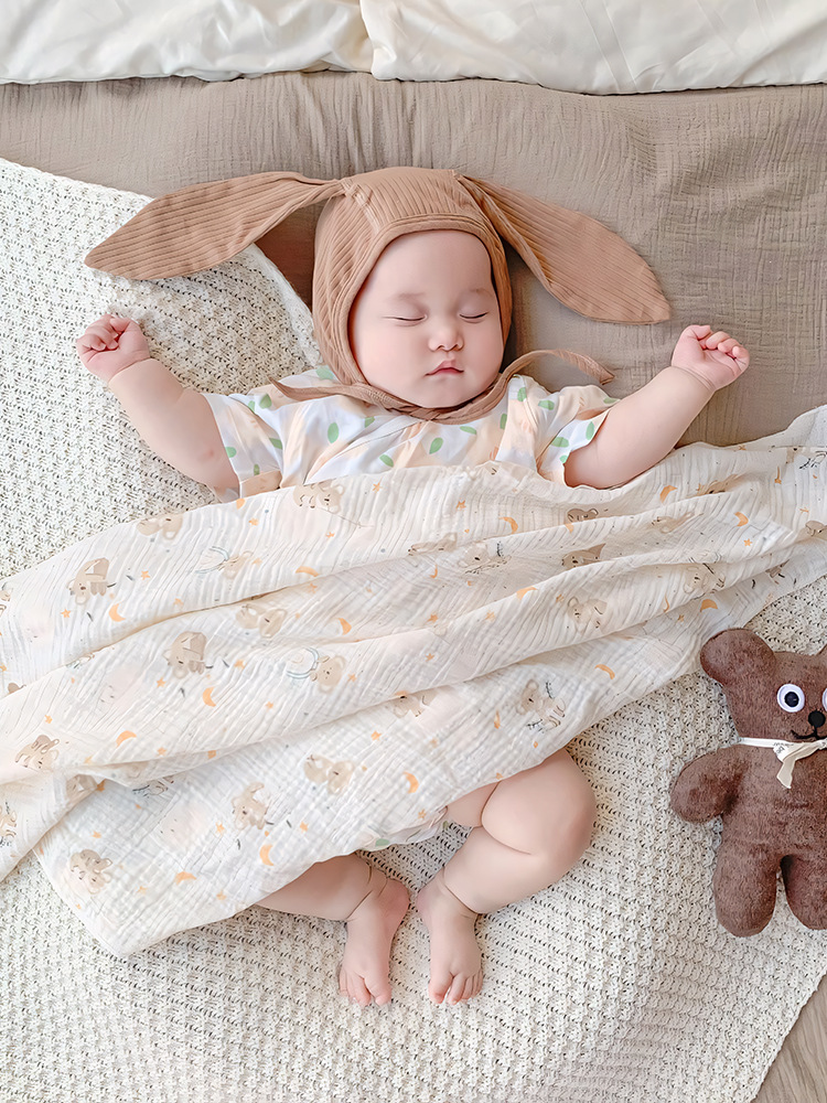 生まれたばかりの赤ちゃんは単純な綿ガーゼの赤ちゃんに包まれています。