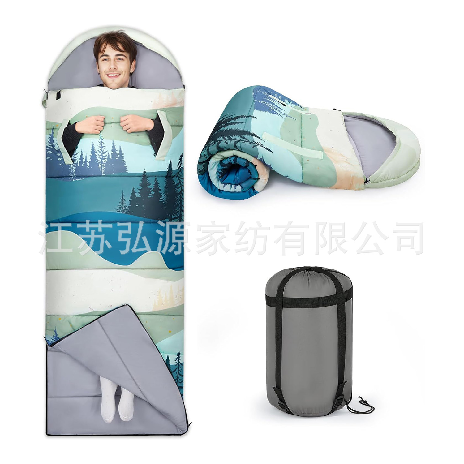 封筒型フード付き屋外寝袋キャンプ大人用寝袋オフィスレジャー用シングル寝袋