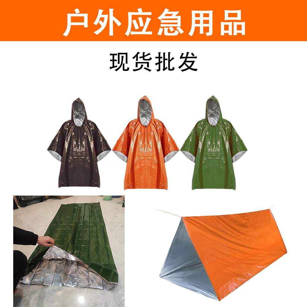顧客がカスタマイズした救急毛布、マラソン、野外での防寒寝袋、厚手の緊急用使い捨て保温レインコートテント