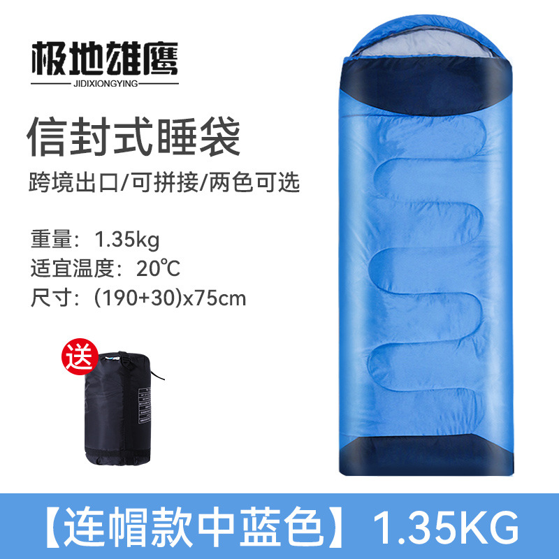 秋冬厚手封筒帽子付き大人寝袋室内昼休み屋外キャンプキャンプ防寒保温シングル寝袋