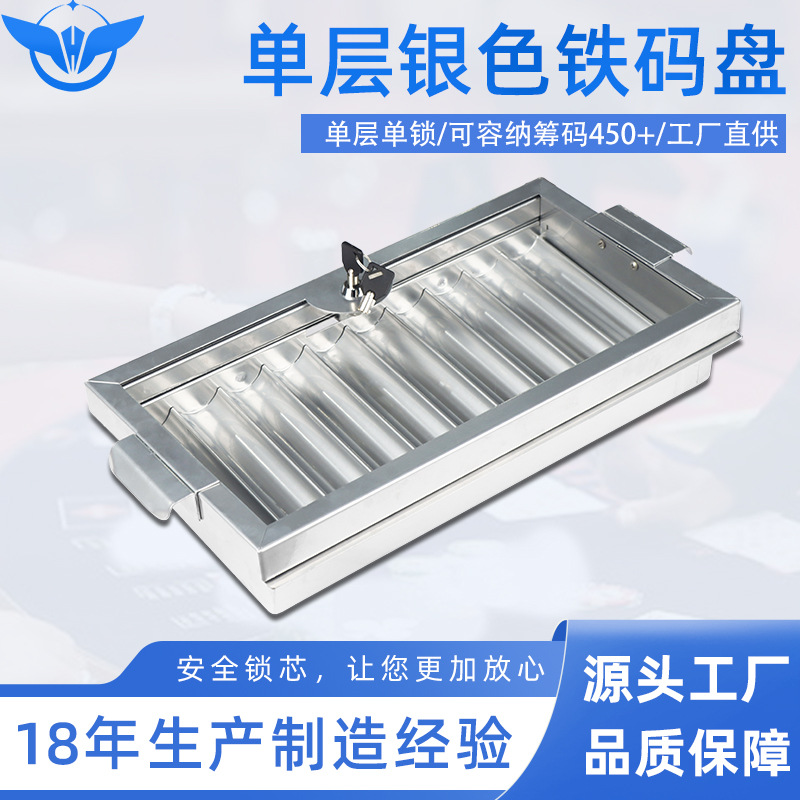 単層銀色鉄コード盤チップ盤大容量安全ロック心アクリル透明板丈夫で耐久性のあるチップボックス