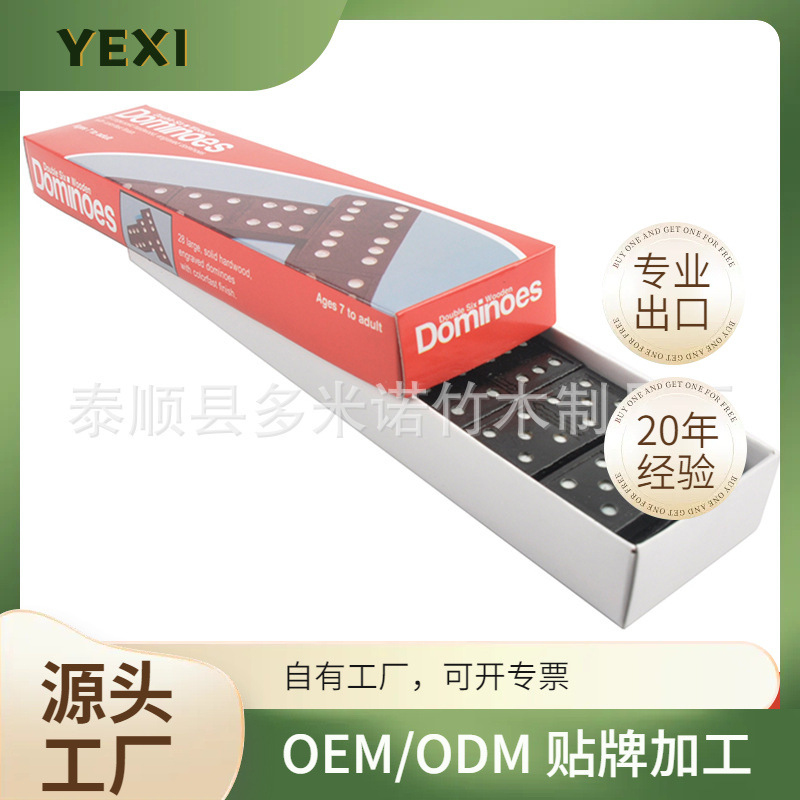 メーカー直販益智対外貿易玩具牌九28枚の大サイズの木製ドミノ黒色骨牌dominoes
