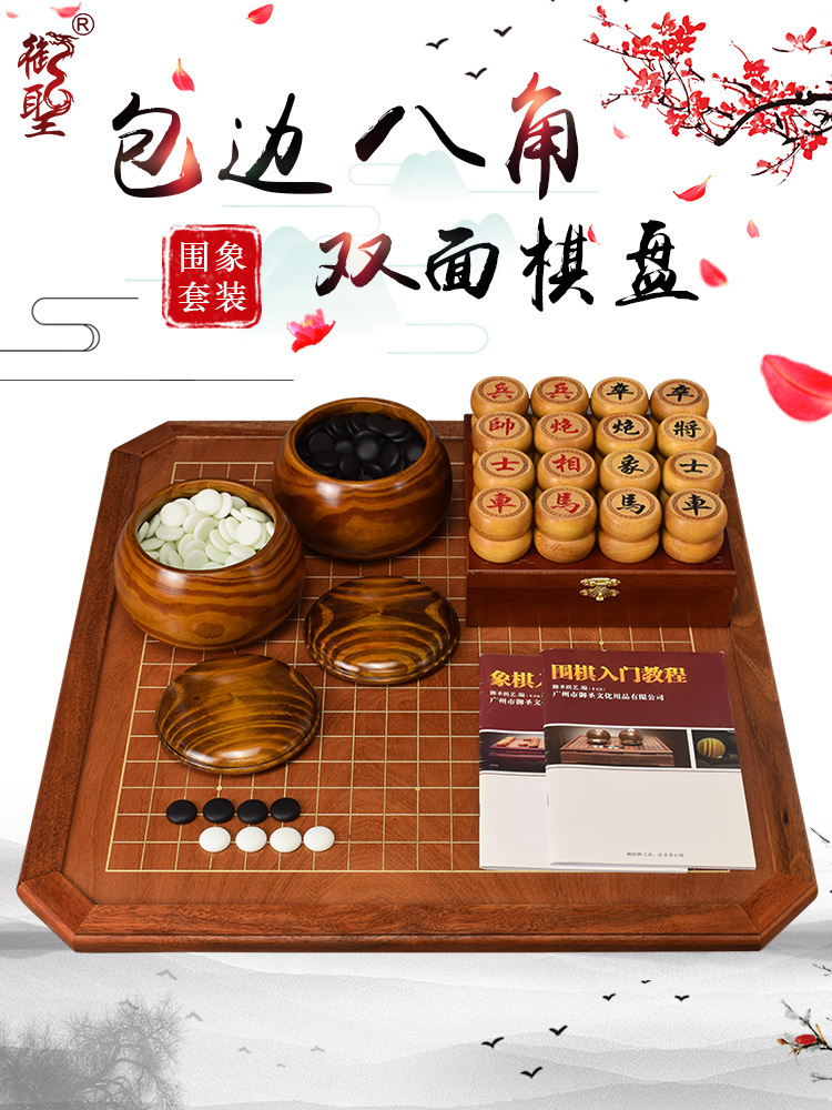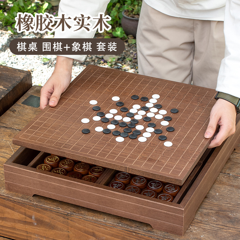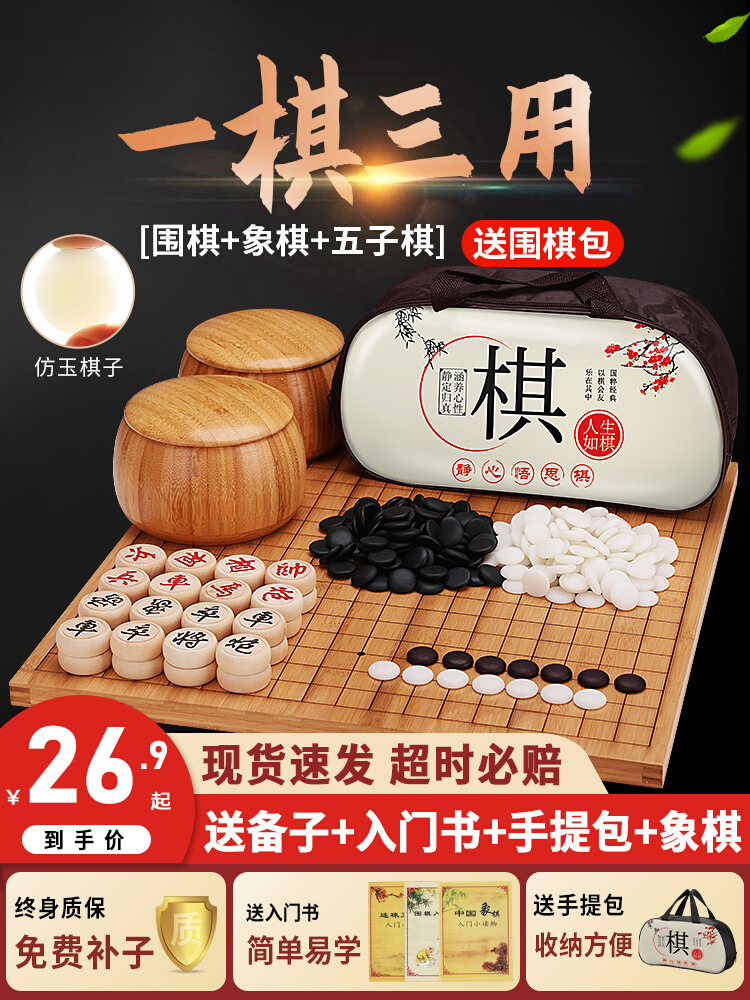 囲碁盤セット子供初心者雲子五子将棋成人版実木将棋三合一囲碁将棋