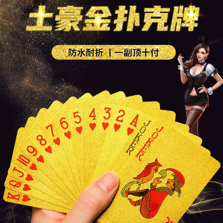 ゴールドトランプPVCプラスチックトランプ防水アイデア土豪金色金属朴克カード金箔木箱