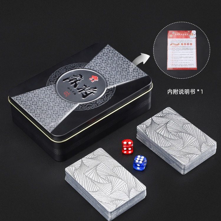 銀箔麻雀トランプpvc防水プラスチック麻雀牌送2サイコロ旅行無声携帯麻雀トランプ
