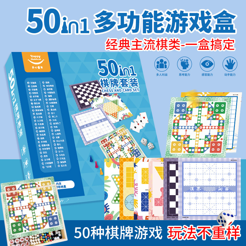 多機能ゲーム将棋50合一子供玩具飛行将棋五子将棋囲碁盤多種類合一知育玩具