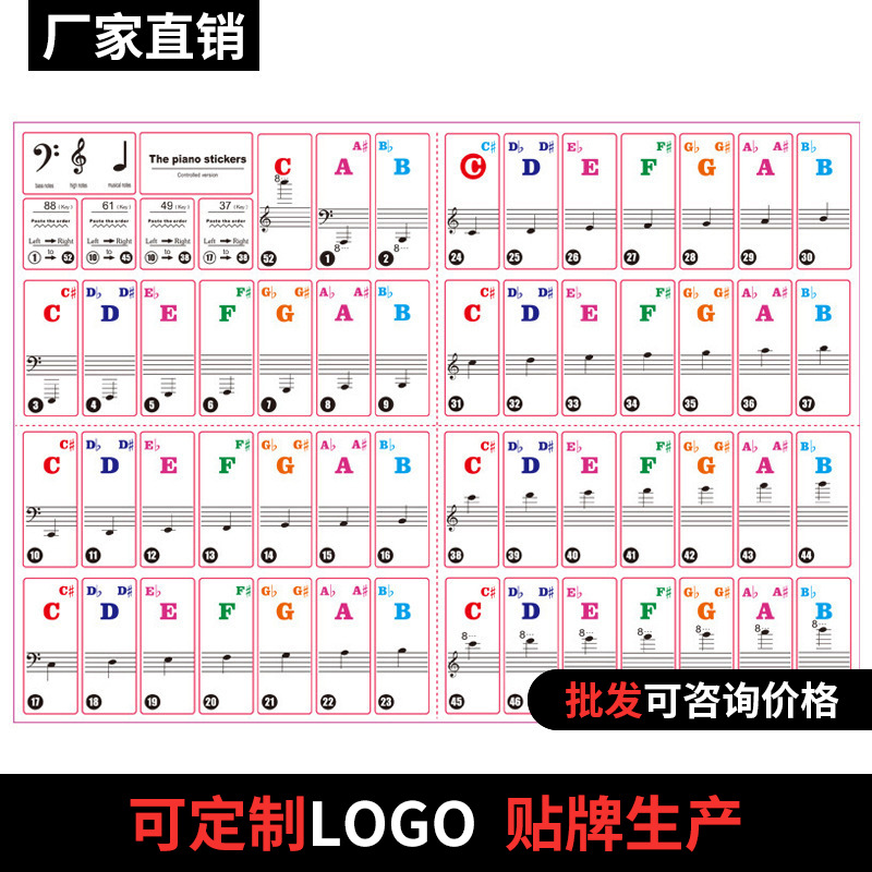 カラーピアノのシールの五線譜の簡単な譜の独学のキーボードのシールのカラーの音名は名前の電子琴のキーボードの膜を歌います。