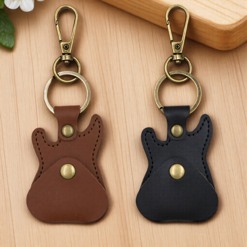 クロスボーダーのギターの形のピックは皮のカバーのキーホルダーのギターのピックの箱のpu皮の民謡の電木のベースのピックのカバーを収納します。
