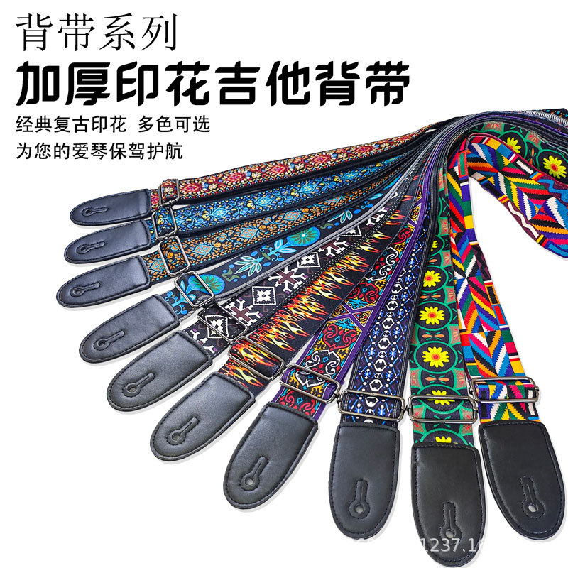 厚いギターストラップ民族風木ギターストラップエレキギターポリエステルプリントストラッププリントストラップukストラップ