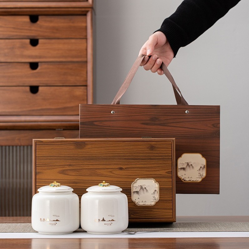 楷陶磁器茶葉缶レトロ木箱茶葉包装箱古樹プーアル紅茶白茶緑茶龍井礼箱