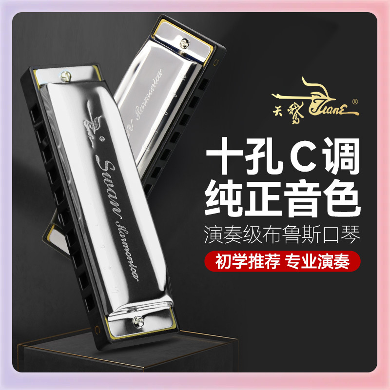 ✅ハーモニカシルバー10穴C調ブルースハーモニカ初心者プロ演奏十穴入門楽