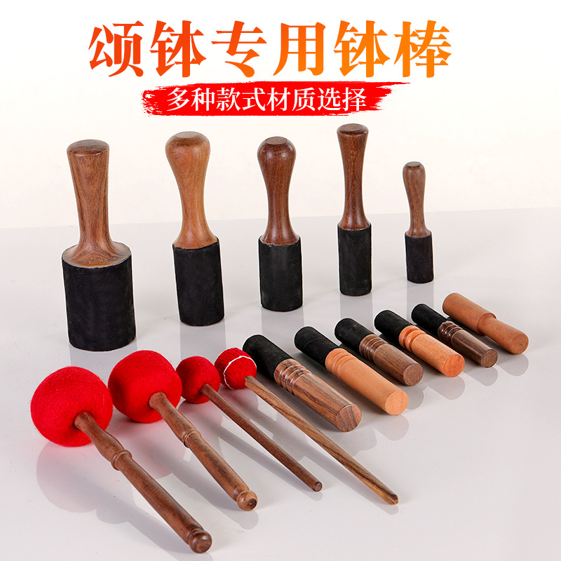 尼西蔵鉢部品卸売りネパールの手作りの木の棒は皮を巻いて棒の音の碗を磨いて棒の音の鉢の槌の家庭用の鉢を回転します。