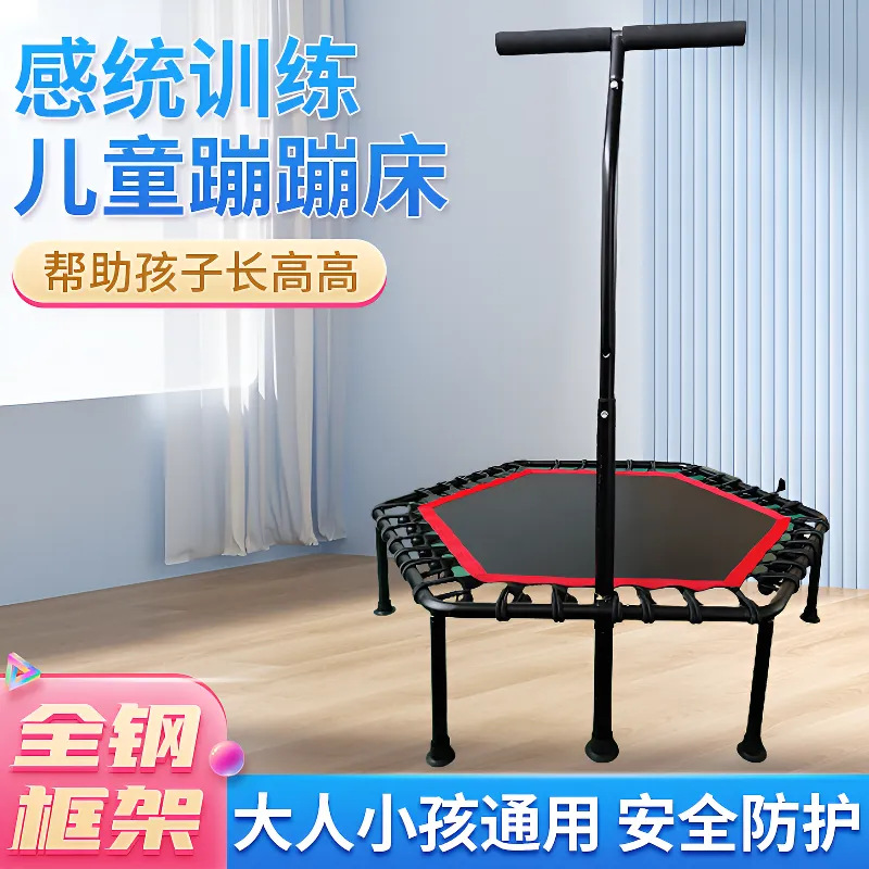 トランポリン運動六角手すり室内家庭用ジャンプベッドセット成人クロスボーダートランポリンメーカー卸売り