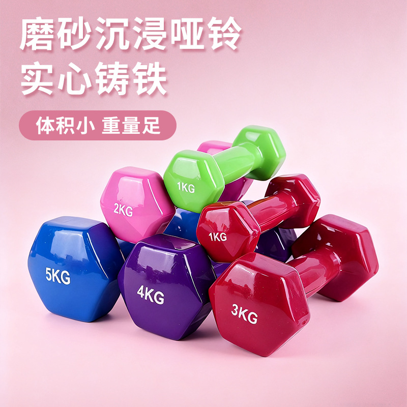 浸塑ダンベルフィットネス平頭フロスト男性女性ヨガ家庭用トレーニング運動器材中実鋳鉄ダンベル