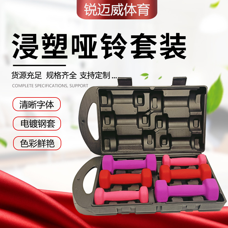 卸売り浸塑ダンベルセット家庭用ゴムカラー六角ダンベル女性男性フィットネス用浸塑ダンベルセット