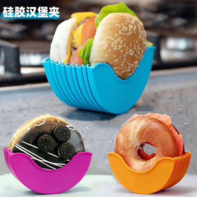 国境を越えたシリコン製ハンバーガー固定箱伸縮ハンバーガータルトドーナツサンドイッチ箱は洗浄しやすい