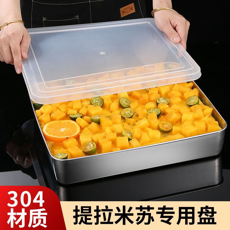 ティラミス鉄ボックスコンテナー304ステンレス角皿長方形蓋付きトレー付きフラットケーキ皿