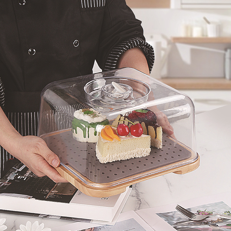 木製ケーキ展示皿透明プラスチックカバー担ぎお菓子トレーデザートスタンド展示棚パン試食皿蓋付き