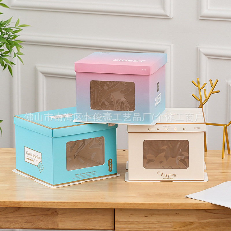 誕生日ケーキ箱6インチ8インチ10インチ角形透明窓開けケーキ箱紙焙煎包装箱卸売り
