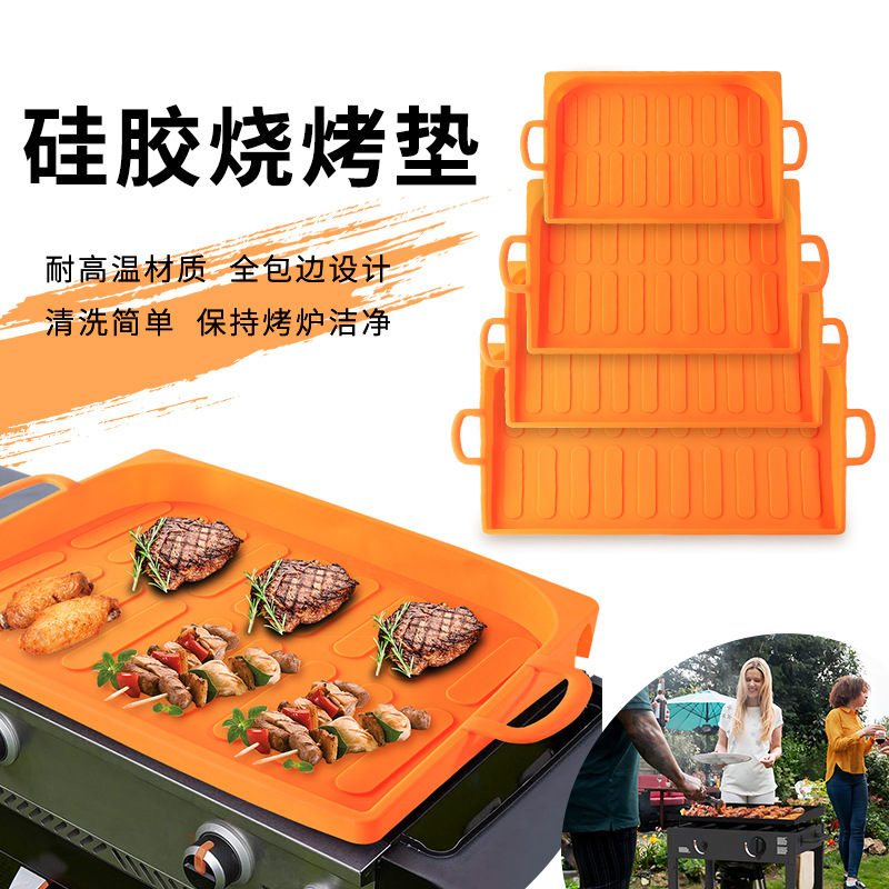 シリコンバーベキューマット食品級オレンジ多機能多サイズハンドル型焙煎屋外キャンプオーブンツール