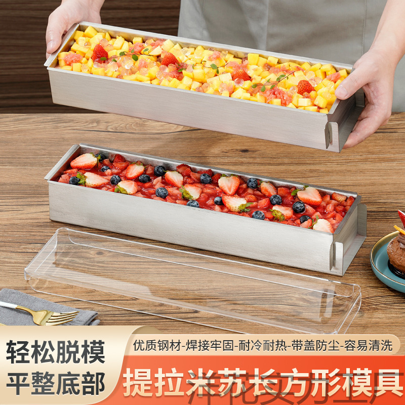 ティラミス金型の長方形のステンレスの屋台の箱のケーキの胚の長いトレーのシャベルのツールのセット