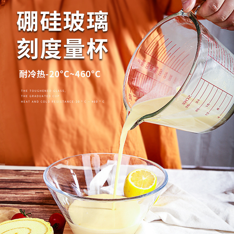 目盛り付き家庭用計量カップ、キッチンハンドル付きシリコンボロシリカガラス製ミルクカップ、耐熱カップ、卵泡立て器、卸売
