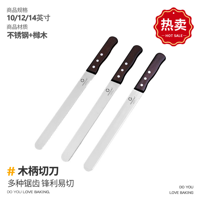 ステンレスパントーストナイフケーキスライスムース平口カッター10-14インチ木柄のこぎり刃