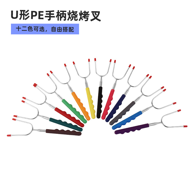 クロスボーダーカラー34インチバーベキューフォーク多色ステンレスバーベキューフォーク2色ハンドルホットドッグフォーク