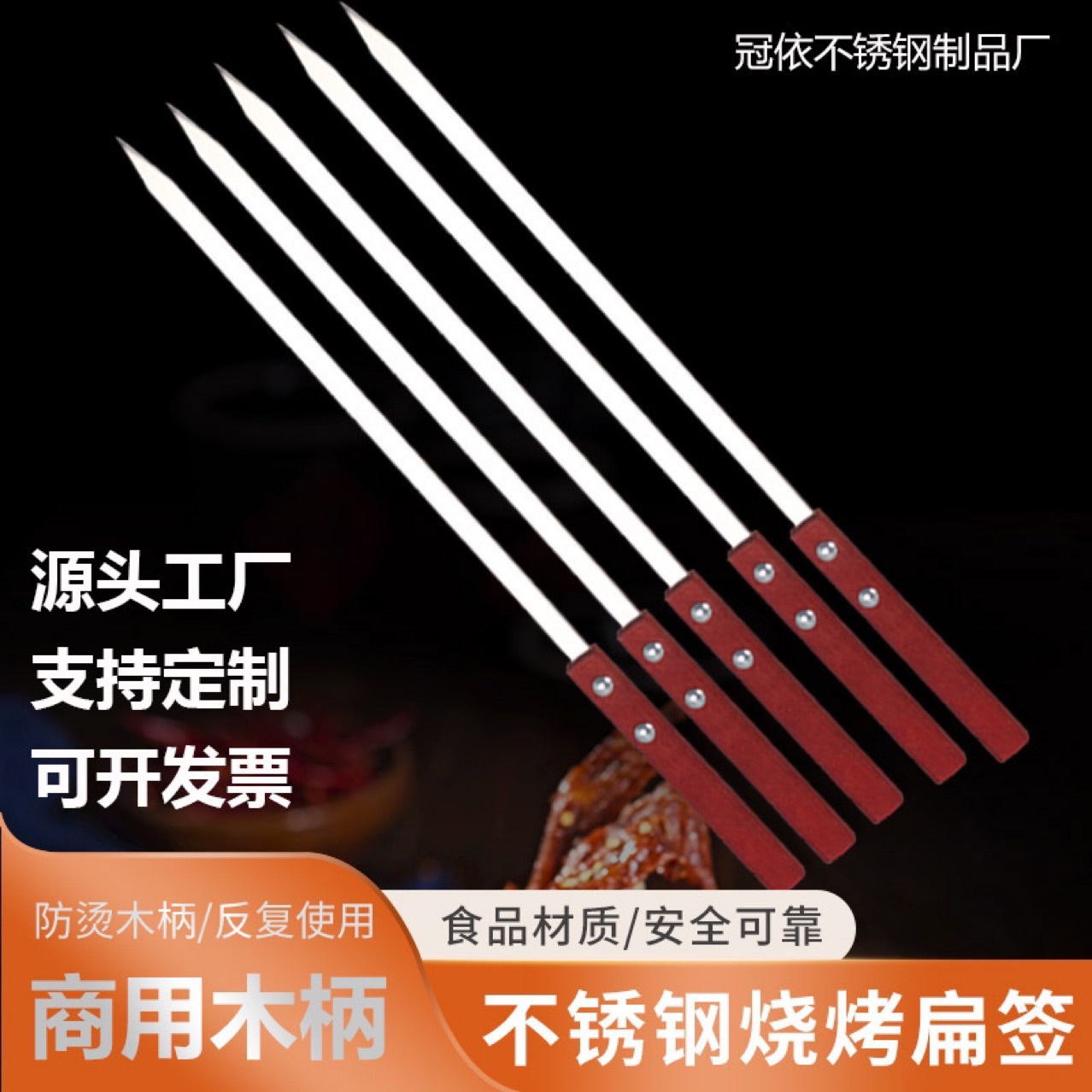 バーベキュー用具ステンレスの平串を厚くして、バーベキューのサインをしたばかりです。