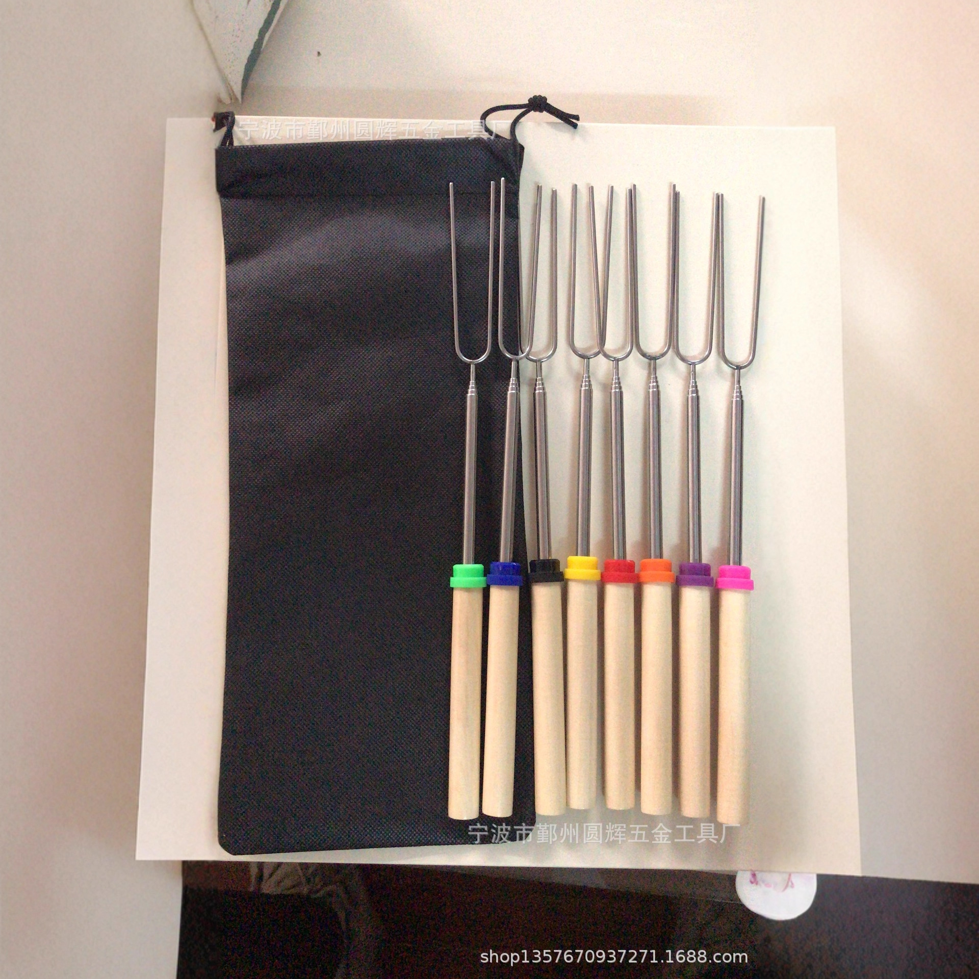スポット工場特許屋外bbqステンレスバーベキューフォーク8色綿フォーク伸縮木柄バーベキューバーバーベキューフォーク