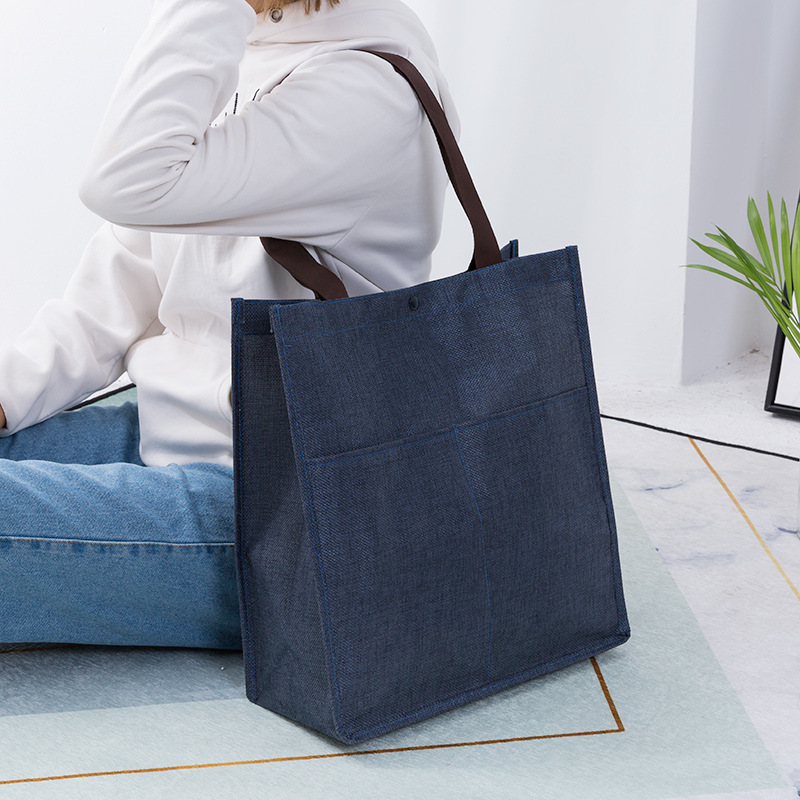 綿麻折り畳み純色レジ袋学生本文房具バックパック弁当食品携帯包装袋現物