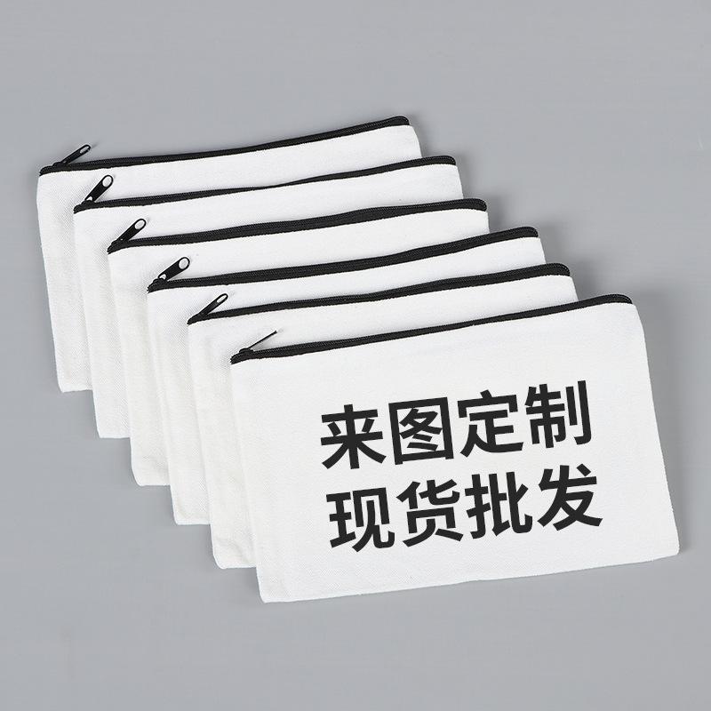 空白帆布化妆包拉链包大容量手拿零钱袋彩印logo创意铅笔文具袋子