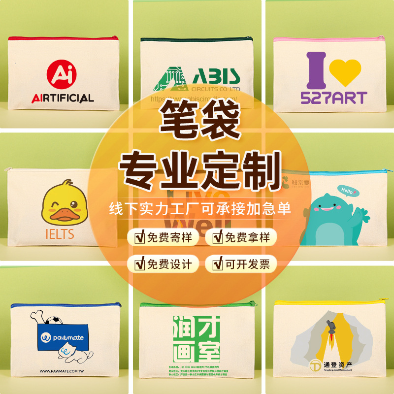 現物空白手描きdiyジッパー帆布筆袋学生文房具袋鉛筆収納袋予約ロゴ生産